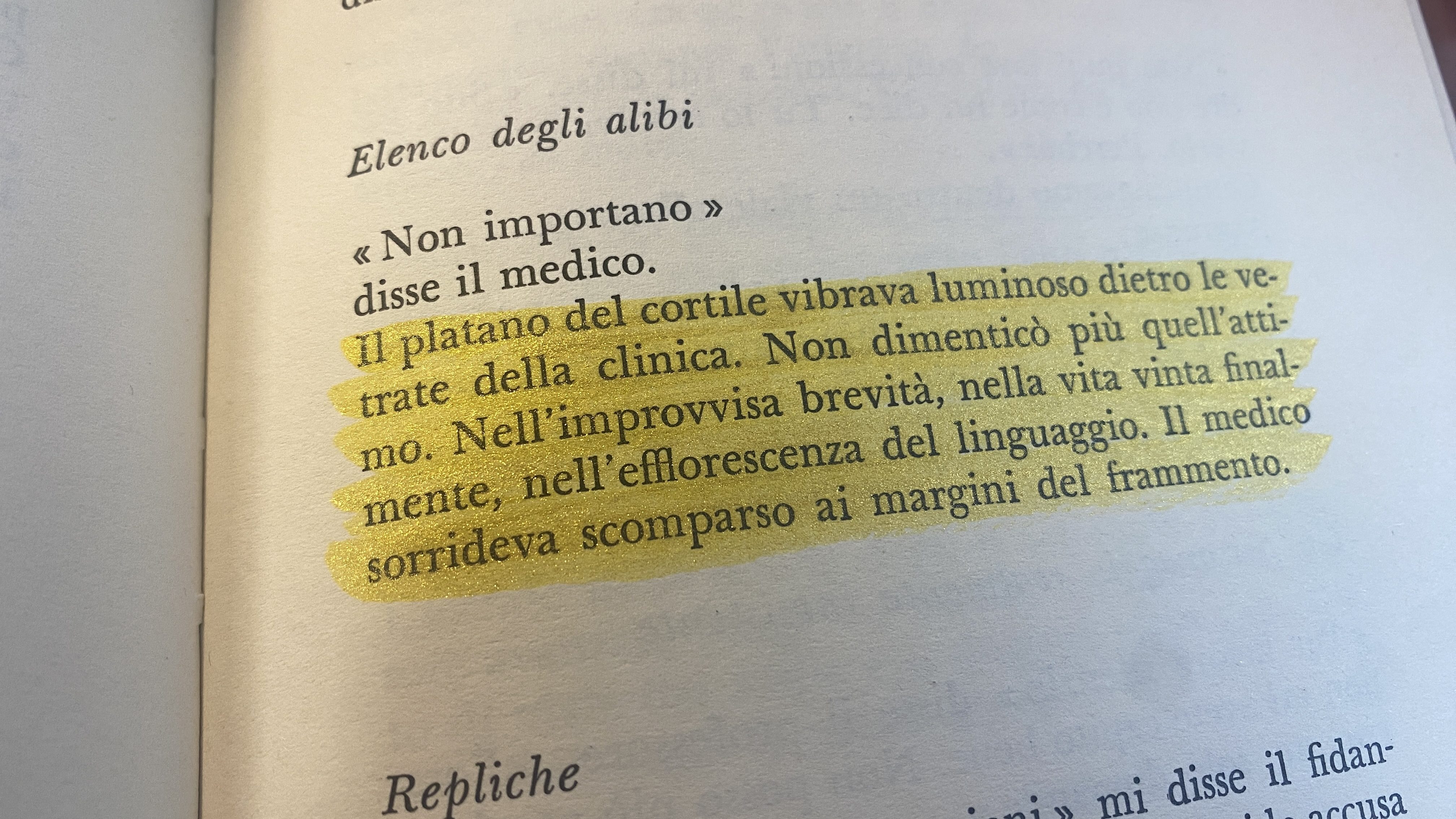 Nell’efflorescenza del linguaggio, non altrove. Nel formulato alchemicamente. Non è forse questo che proviamo a fare? Usiamo la materia per eluderla. Ogni cosa che vibra è già in fuga. Il platano non appartiene più al cortile, anche se è quel platano lì e non un altro — ha smesso di crescere, nel ricordo esatto della persona. Perché, a differenza della fantasia, raramente la memoria è capace di proiettare dei film: ritaglia diapositive, lascia gli alberi dov’erano nel momento in cui, nel momento che, in quel momento lì, in quel.