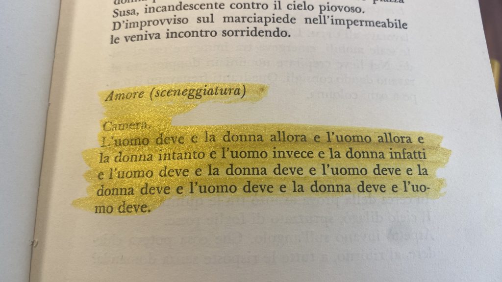 Pontiggia scrive un giallo privo di un assassino definito, così come manca anche una vittima. C’è un mistero da risolvere, ma non si risolve. Adotta una struttura prismatica che continua a cambiare luce sotto lo sguardo del lettore. Non si capisce cosa si allucinazione, cosa proiezione e cosa soltanto analisi. E allora perché usare un giallo per poi svuotarlo? Questo anti-romanzo si offre come un catalogo di trame possibili. Conserva per me lo sforzo strutturale di tenere in piedi l’esistenza e, a volte, il mondo intero. Mi ha ricordato, a tratti, The Beauty of The Husband di Anne Carson — ma il suo saggio romanzato in 29 tanghi è molto più lineare, “girato” in piano sequenza: con un linguaggio erotescente [neologismo del quale avvertivo la necessità. Erotescente è una condizione linguistica pre-erotica, in fase di germinazione], la Carson avanza come solo chi resta indietro sa fare. Arrabbiata, arrabbiatissima, la sua vendetta è andare a capo di continuo.