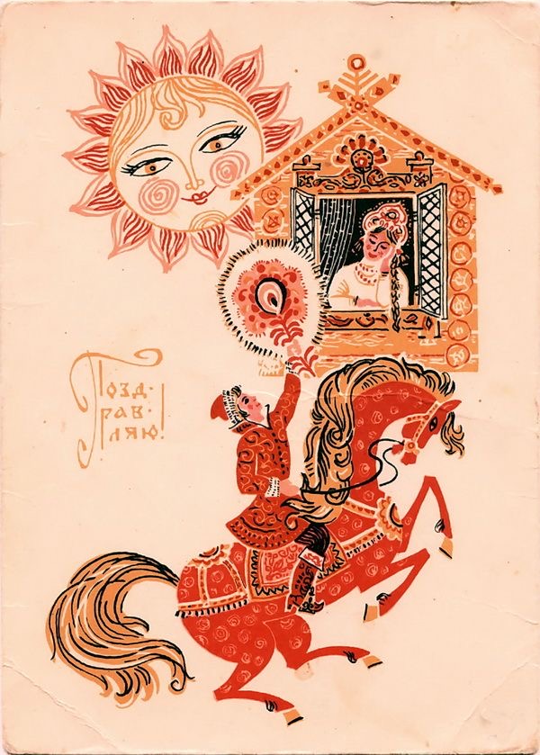 [Nell’illustrazione c’è scritto ПОЗД-РАВ-ЛЯЮ!, che può significare sia congratulazioni che auguri a seconda del contesto. La radice del verbo è -здрав, salute, dal paleoslavo zdravъ; pо- è un prefisso che indica direzione, movimento verso.]